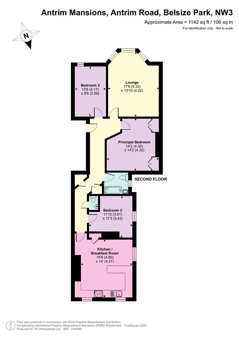 The reception room enjoys a large bay window with pleasant south-westerly aspect, providing abundant natural light. A further noteworthy feature of this apartment is the spacious contemporary kitchen/breakfast room, measuring 15’9″ x 14′ comprising ample storage and generous space for dining as well as a separate guest WC.