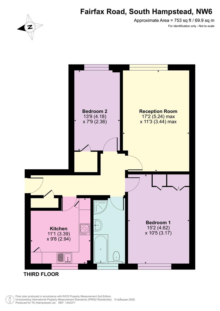 Set on the top (third) floor of a purpose built block, this well proportioned two bedroom apartment offers bright and practical living in the heart of South Hampstead, NW6. The property comprises a spacious reception room with ample natural light, a separate fitted kitchen, two well sized bedrooms, and a modern family bathroom.