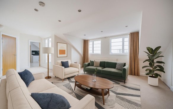 The apartment comprises a particularly generous reception room, which provides access to a private roof terrace with far reaching westerly facing views.