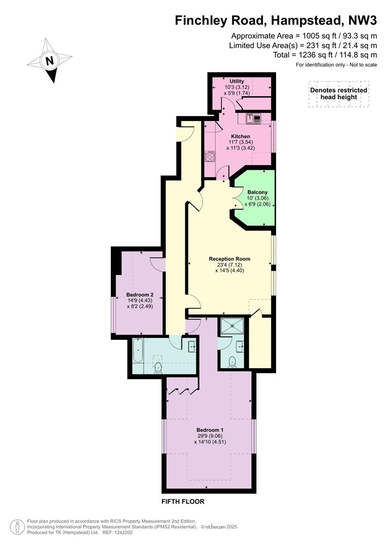 A two bedroom penthouse apartment measuring 1,005 sq ft (1,236 sq ft including areas of restricted height), offering copious amounts of light and uninterrupted views situated at the top of this popular 1920’s portered block on the corner of West Heath Road.