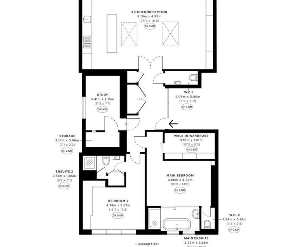 This impressive apartment is built with quality in mind, incorporating elegance and generous proportions throughout. The property comprises a trendy modern kitchen, which is open plan to the reception room enjoying wonderful natural light due to its southerly aspect, further enhanced by two skylights. The principal bedroom benefits from an ensuite shower room and dressing area. In addition there is a second double bedroom, a study/studio, plus a guest cloakroom and a spacious welcoming entrance hall.