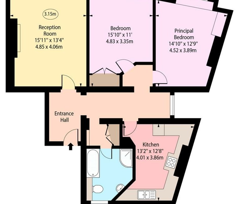 The flat comprises charming living and entertaining space and features high ceilings and wonderful period features throughout. The accommodation includes a spacious reception room, a well equipped separate kitchen/breakfast room, two generously proportioned double bedrooms and a modern bathroom, providing ample space for a small family or professionals seeking a comfortable living environment.
