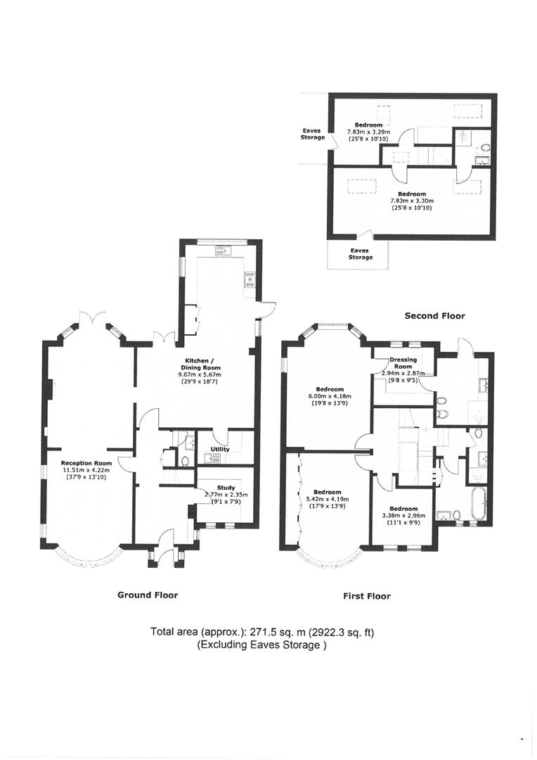 The first floor enjoys a master bedroom with en-suite bathroom & dressing room, two further bedrooms, a family bathroom and a separate shower room. There are an additional two bedrooms and an en-suite shower room on the second floor.