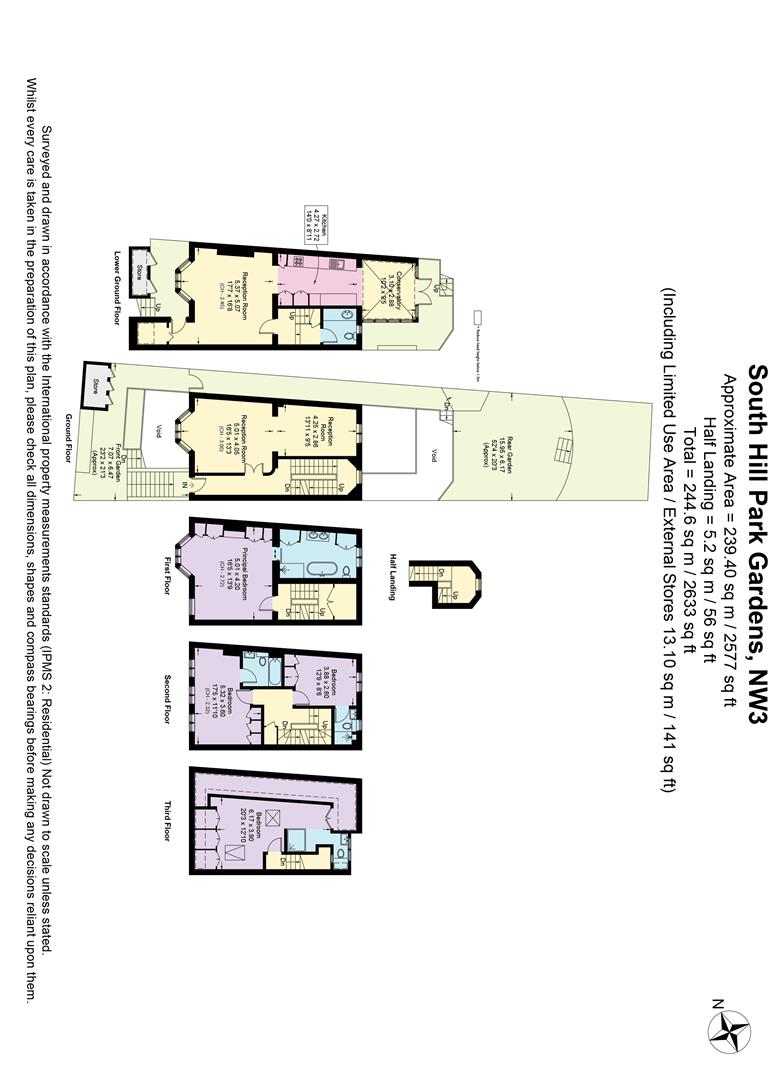 On the lower ground floor there is a reception room which opens up to a 'Plain English' custom built kitchen, which in turn leads to a conservatory; a guest cloak room/laundry room. The raised ground floor has a bright, high ceiling 31' double reception room. The principle suite occupies the entire first floor and features a stunning en suite bathroom with separate marble tiled shower. There are three further bedrooms all with en suites over the floors above. The property also benefits from a well stocked and landscaped 55ft rear garden and front and rear patios.