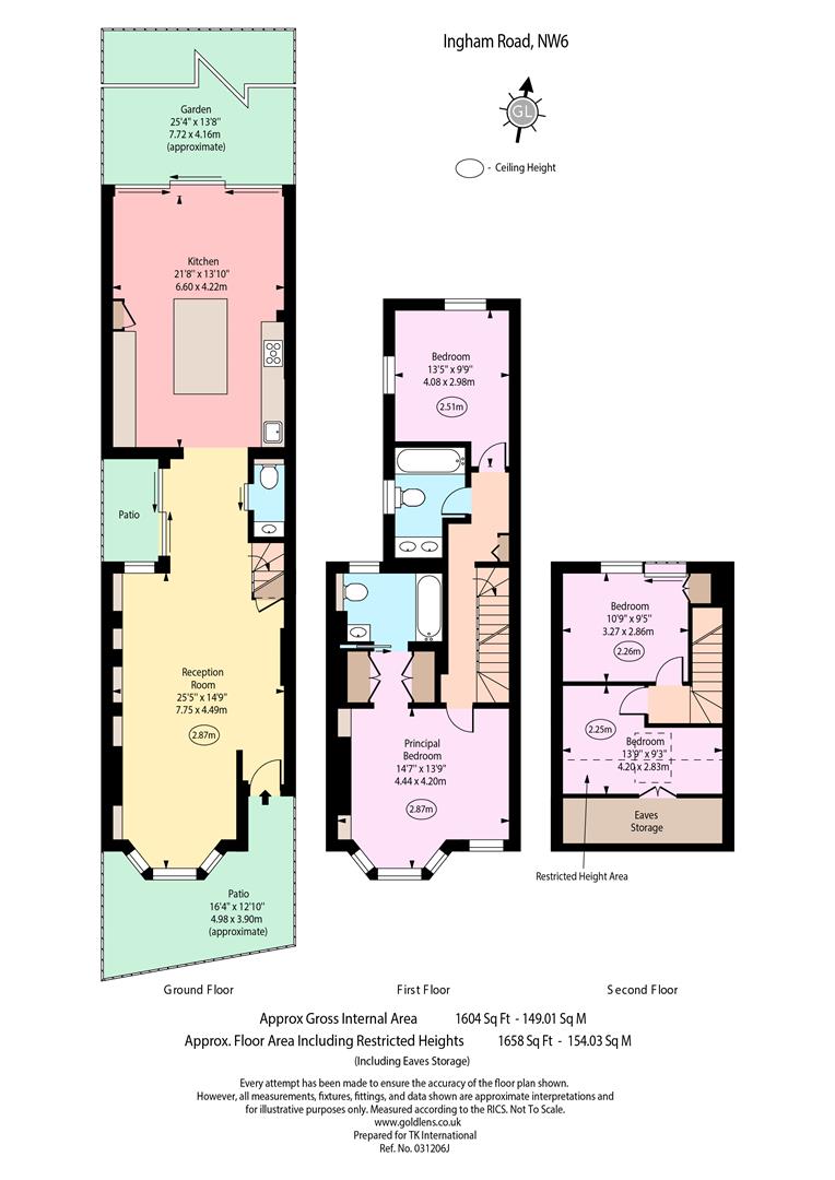 The first floor offers a principal bedroom suite with dressing area & en-suite bathroom, as well as another double bedroom and a family bathroom, with the second floor providing two further double bedrooms and extensive eave storage.