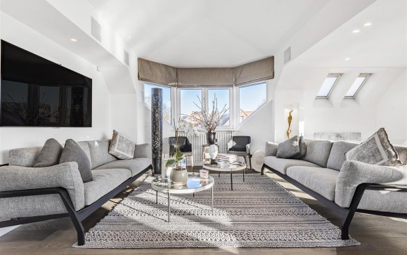This striking apartment is owned by the architect who designed and oversaw its remodeling and refurbishment, where many of the fitted materials and appliances have been imported from across Europe to create an elegant bespoke finish and to an excellent standard.