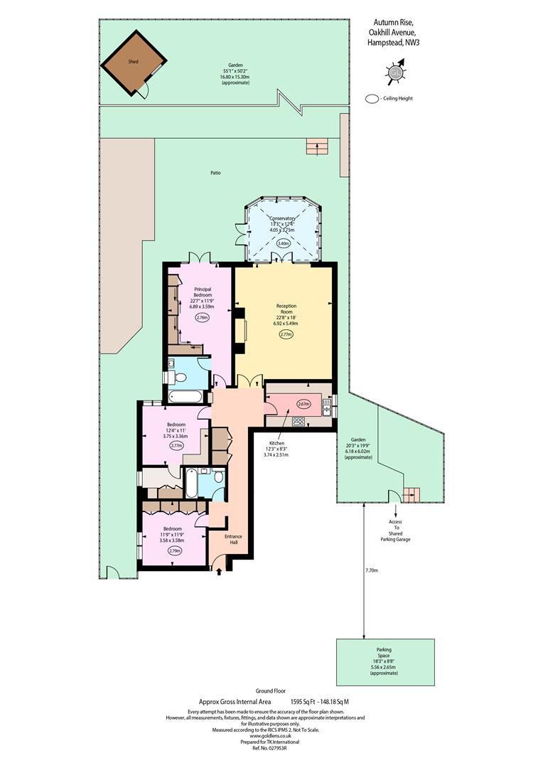 This apartment comprises a 22’8″ reception room and a generous conservatory providing excellent living accommodation. The beautiful mature garden, accessible from the conservatory, principal bedroom, and via a side access, extends to 55 ft and provides a tranquil setting for alfresco dining and entertaining. There is also direct access to the communal garage from the garden with an allocated parking space for one car.