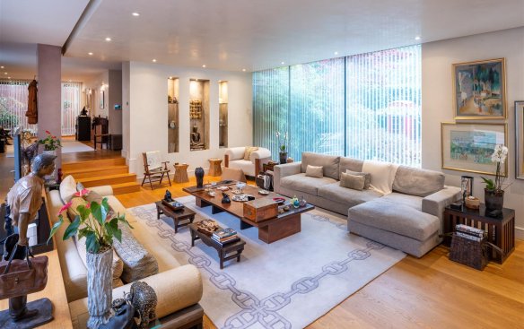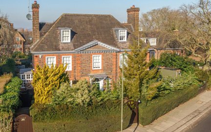 On the market for the first time since 1987, an incredibly rare opportunity to purchase a very lateral 1960’s built contemporary five-bedroom house of some 4,308 sq ft which primarily has 80% of the accommodation arranged over one floor only and is discretely situated on a beautifully mature plot of over a quarter of an acre. This unusual home is set back from the road with off street parking for two/three cars as well as a large double width garage. The house has been meticulously maintained by the present owners but could now benefit from some level of updating.