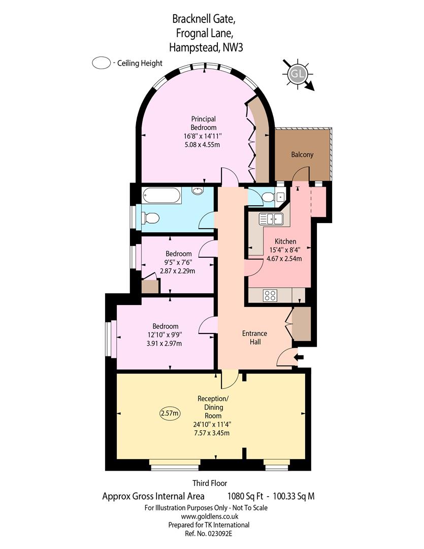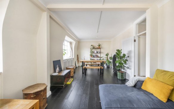 This spacious apartment measures 1,129 sq ft, and notable features include a 24’10 ft reception and a generously proportioned master bedroom with far reaching westerly views, and a balcony which is accessed via a galley kitchen.