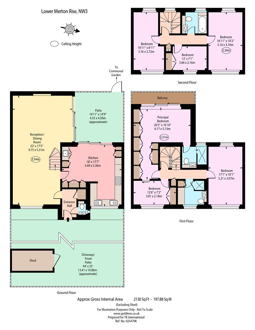 Nestled on a private driveway, the house has parking for three cars, providing both convenience and privacy. The spacious reception room is filled with natural light, and the sleek, fully fitted eat-in kitchen opens directly onto a private patio garden. On the second and third floors, there is an impressive principal bedroom, complete with an en suite bathroom, dressing room/study, and its own private balcony. There’s also a second double bedroom with a separate shower room, along with three additional double bedrooms and a third family bathroom. The property also boasts wooden floors throughout, with the added benefit of access to communal gardens.