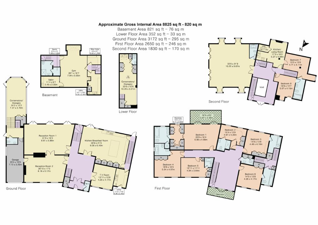 Upon entry, you are welcomed by a soaring triple-height reception hall featuring a sweeping staircase and two galleried landings. The home boasts two elegant reception areas—one opening through French doors onto the expansive garden, and a separate television room. The dine-in kitchen, crafted by the internationally acclaimed Poggenpohl, leads directly to the garden where a patio awaits alfresco dining during warmer months. An enchanting two-storey orangery further enhances the property’s appeal.