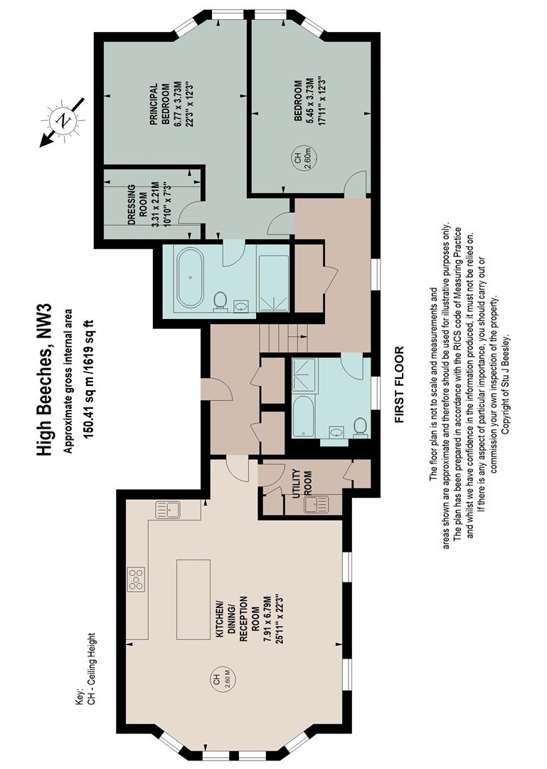 Both bedrooms are generously proportioned and the principal bedroom features a full ensuite bathroom and walk-in dressing room. The bathrooms feature Porcelanosa sanitary ware, Hansgrohe brass ware and large format porcelain tiling to walls and floors.